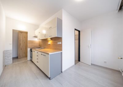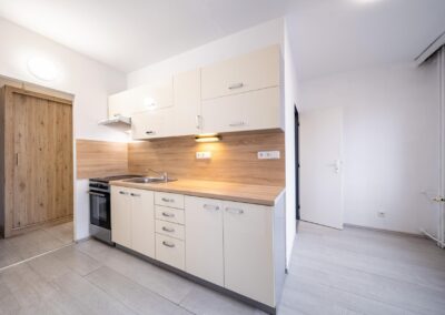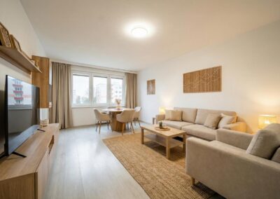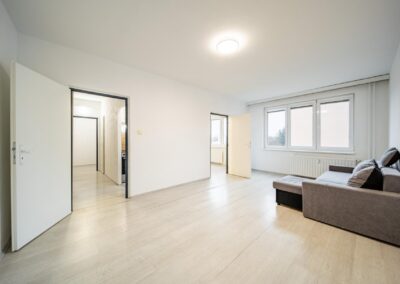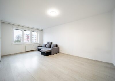 Hlavní obytný prostor je tvořen světlým a vzdušným obývacím pokojem, který se stane ideálním místem pro rodinná setkání nebo večery u filmu. Díky velkému oknu do něj proudí dostatek denního světla, což vytváří příjemnou a útulnou atmosféru. Ložnice je též dostatečně prostorná a výborně prosvětlená.