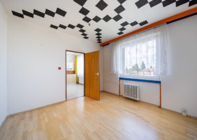 Byt je nezařízený, což dává novému majiteli možnost vybavit si či zrekonstruovat interiér dle vlastních představ a stylu.
